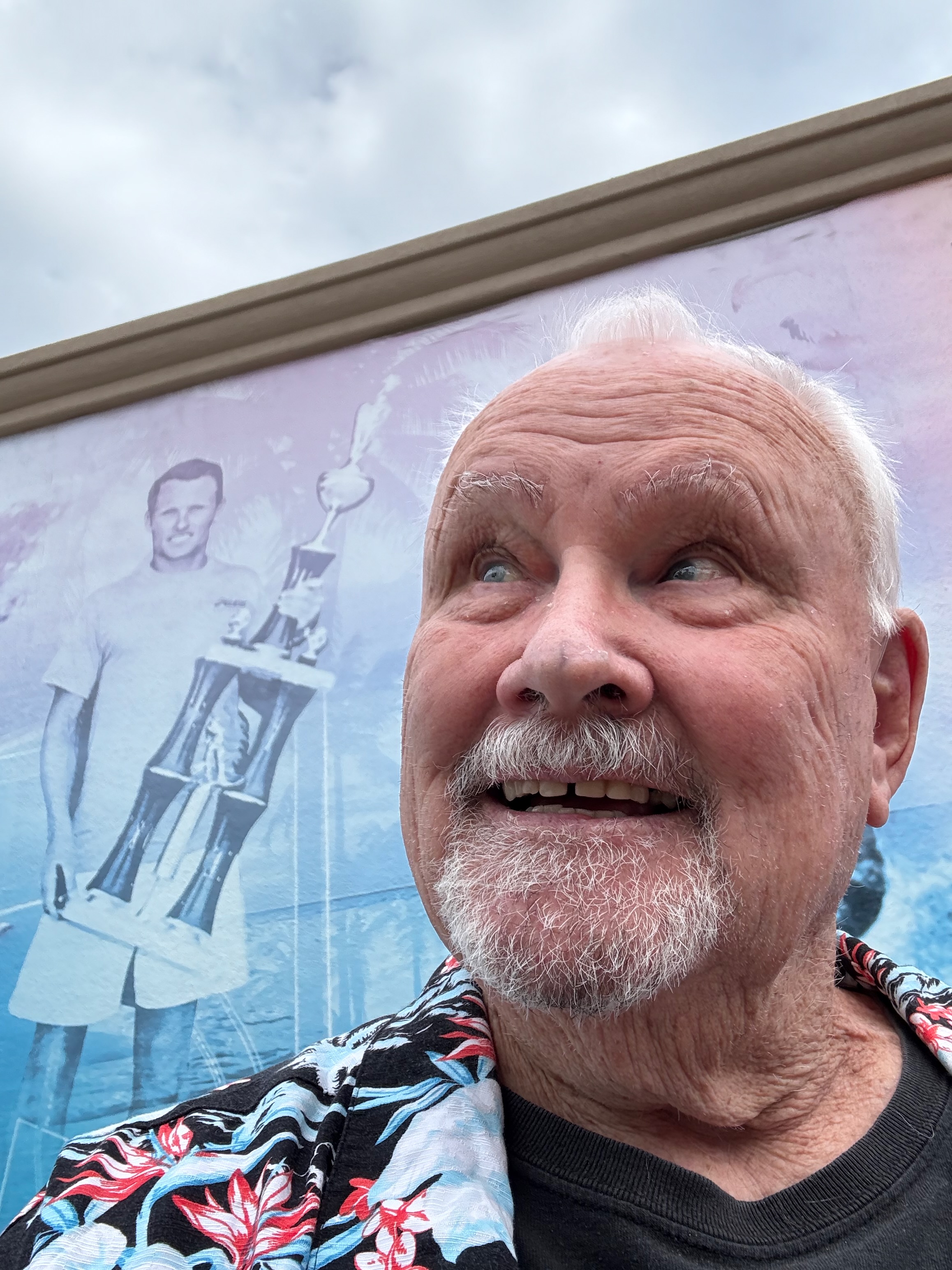 Surfer. Musician. Artist. Writer. Designer. Announcer. Teacher. Talents many aspire to. How about being the first pro surfer? Or having your first album become a benchmark for surf music? Or being part of one of the most famous ad campaigns ever? Miller Lite’s “Tastes Great, Less Filling”. And loving it all. That’s Corky Carroll. He’s been “out there, on it” since the early 1960s, doing what he needs to do to make a living. To the rest of us, it looks like fun. Bitchin. Crazy. Cool. And it was, until his heart gave him trouble. That’s when Corky had to give up a good life in Saladita. What’s a seventy-some-year-old guy to do? Paint? Sell his work online? What?