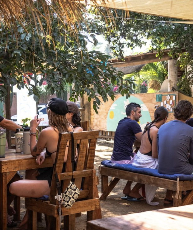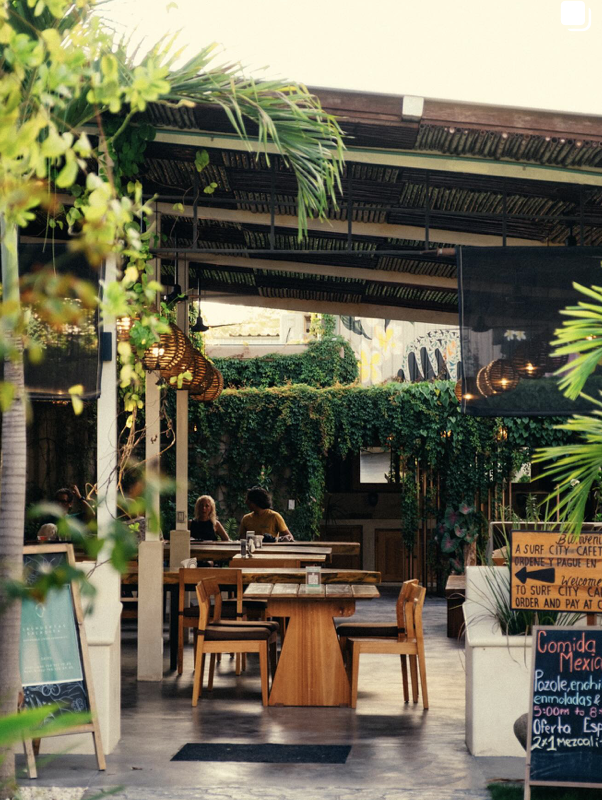 Down on the beach you'll find several classic break front eateries. Marea features a variety of seafood dishes with themed nights on weekends and live music, creating a vibrant feet in the sand dining and chilling atmosphere. At Ilianet's The ceviche is bright and generous, the tiritas sharp and citrusy, and the fish always grilled just right. You can order in your rashguard, eat with your hands and be in the water again in under an hour. One of the first spots on the beach, Lourdes offers a variety of Mexican dishes, pizzas and burgers. With a balcony facing the point break, it’s a great place to eat, chill and enjoy live music. Back inland, look for Acadia, a new café, surf shop and boutique. Expect good espresso, nice vibes and quiet seating, all surrounded by mango trees.