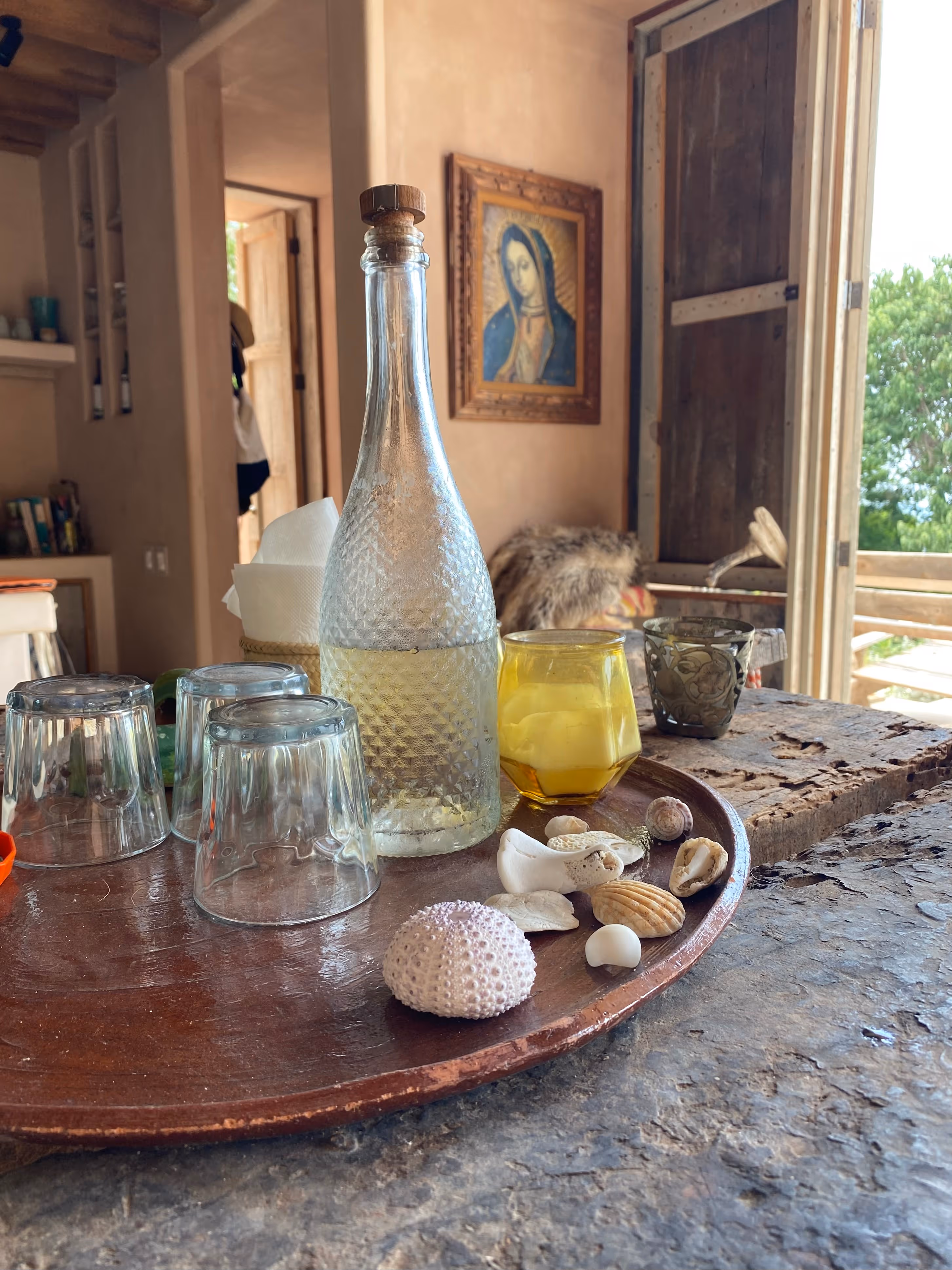When it came to the color of the pasta, the smooth concrete finish used on the exterior and interior walls, Christine did have a specific color in mindâa âpink salmon-y desert tanâ. The house has that now, but getting there was far from the simplicity of installing cut tiles. âNicolas and I had a million pictures in our storyboards, our inspiration boards. El pastero, the maestro of the pasta, kept making samples for me, but they were everything but what I wanted. That went on and on. For a while, I thought he was color-blind. I finally gave up. I went safe and picked a beige. This was right before I moved down here permanently so I was still going back and forth once a month, twice a month. I figured before we do anything on the main house, letâs pasta the bungalow so that if itâs a horrible mistake, we can make changes on the house.