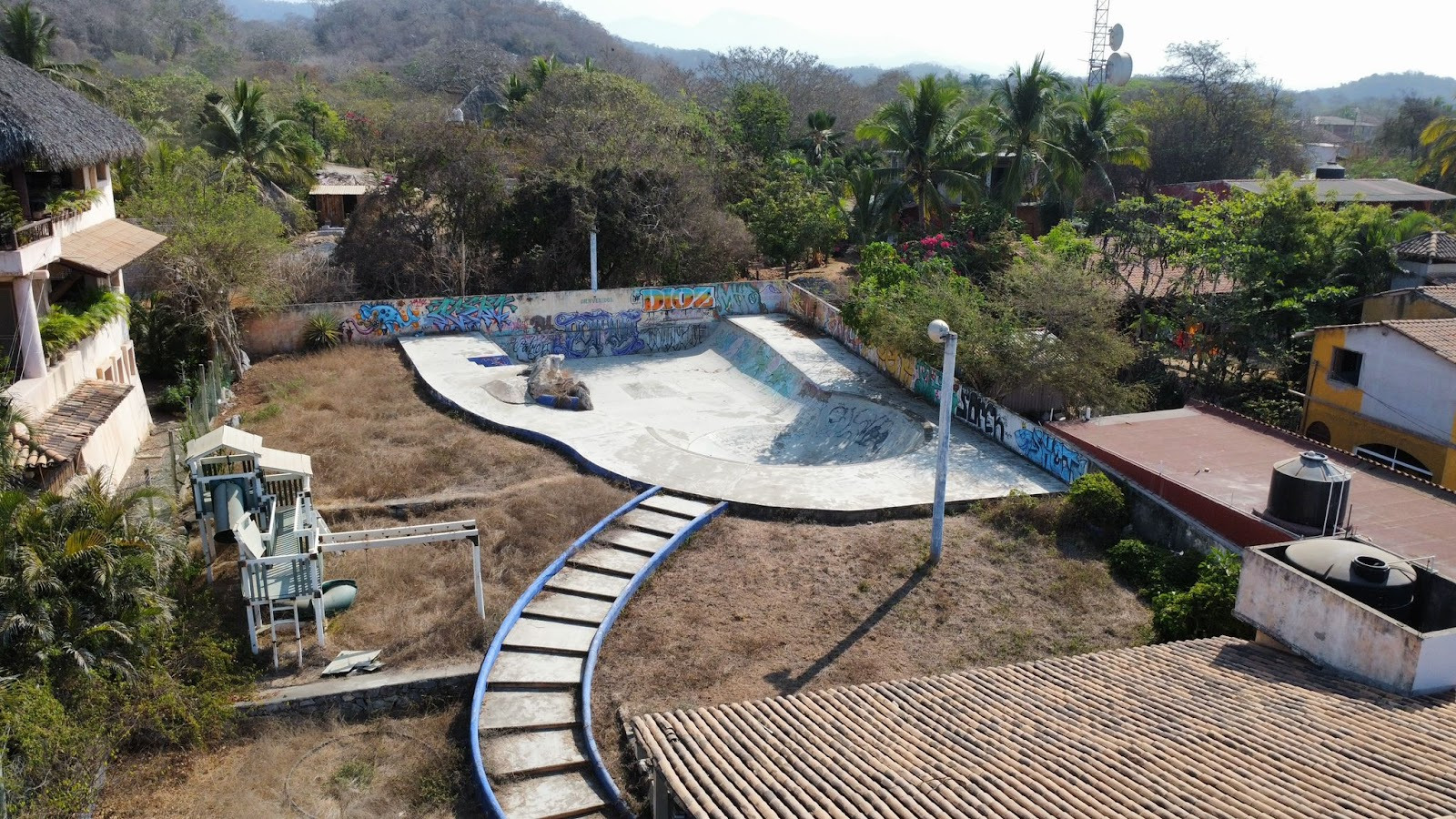 That’s the way it is with the Troncones skate park. The how and why come off pretty straightforward—Patrick Crosby, the owner of Mi Casa es Su Casa (now known as Hotel Tres Santos), decided to build his sons a skate park and a gym to keep them busy and close to home. Everything else is lost in the air, stuck somewhere else in time. The year is somewhat inexact, although around 2005 and about 20 years ago, seem to be in sync. That there was a skateboarding demonstration at the opening, un exhibición for the community, led by professional skaters is the stuff of legend. The name Paul Rodriguez comes up a lot, but no one remembers when he came.