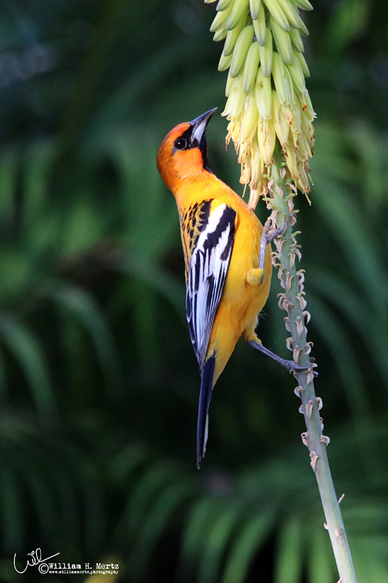 Super male streak-back on dwarf banana flowers. Photo courtesy of William MertzOriole Nest