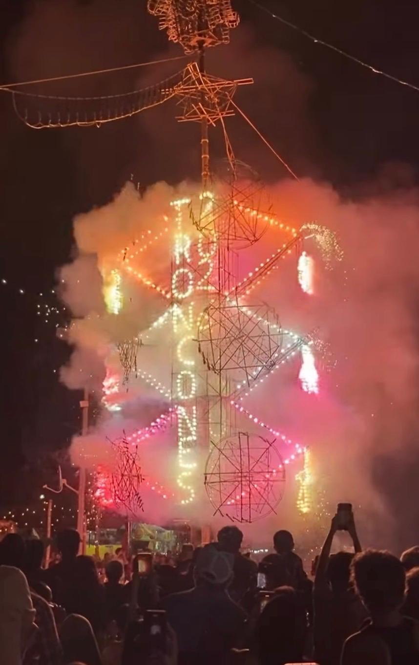 Imagine a 50-foot-tall hand-assembled tower of bamboo loaded with pyrotechnics. And hanging off the central frame are three levels of wheels, wired to go off—to reveal colorful shapes and rain sparks. That’s the Castillo, the centerpiece of the opening night of the Troncones Fair on Friday. The festivities started late Friday afternoon, with a horse parade from Majahua through Troncones that ended at the fairgrounds surrounding Troncones’ basketball cancha. The fun went into the wee hours on Saturday—carnival rides and horse events keeping “everyone” feeling like a kid.