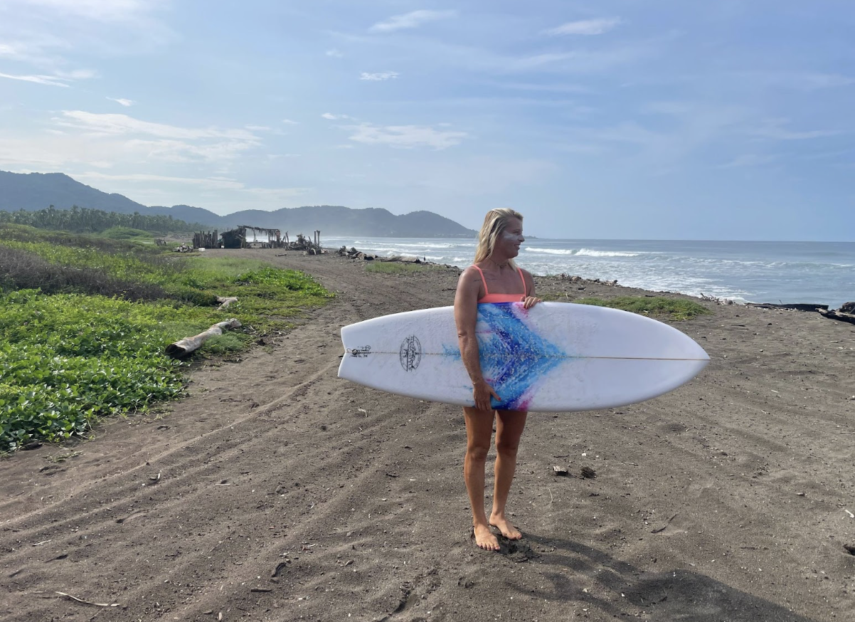 A could-be-anywhere free spirit, Elfi Teutsch chose Troncones as the place to be. Or, perhaps, Troncones chose her. Whichever way that goes, the first time I met Elfie was in the surf, the two of us sharing a large wave, stoked and laughing at our two-person “party wave”. Later, when I needed a board repaired, when I ran out of sunscreen; when I didn’t have any dog treats and when I was at La Cervicheria Troncones wondering what a vegetarian could eat, each time Elfi was there, connecting me to exactly what I needed. There’s no accident in all that–she repairs boards, makes sunscreen, bakes dog treats and helps out at La Cervicheria. Elfi also shapes boards. She’s a creative hands-on business maker and a fixture on the Troncones surf scene.