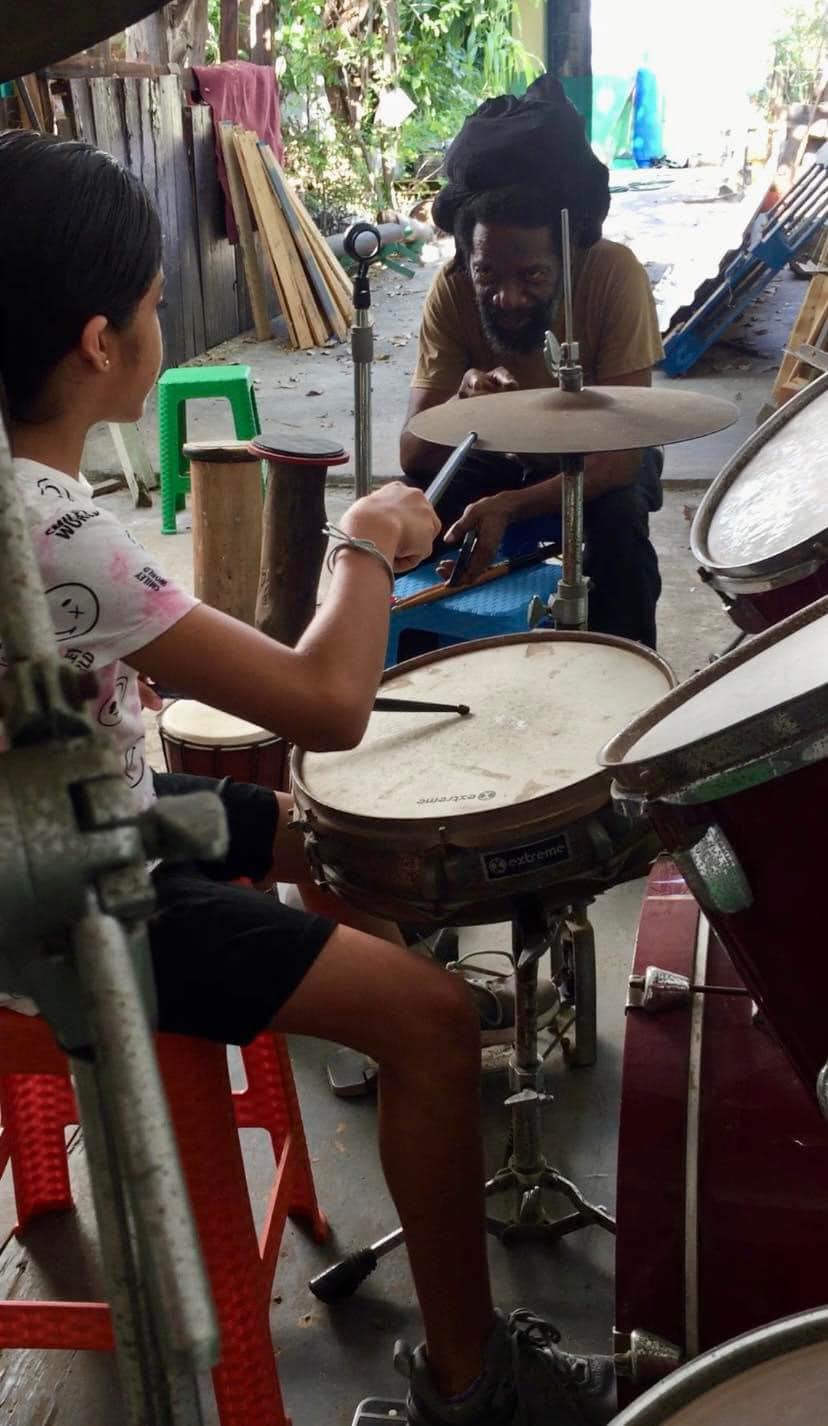 Aikeke: Drums, guitar, bass, piano, violin. We’ve had a sax student. I get them to play.