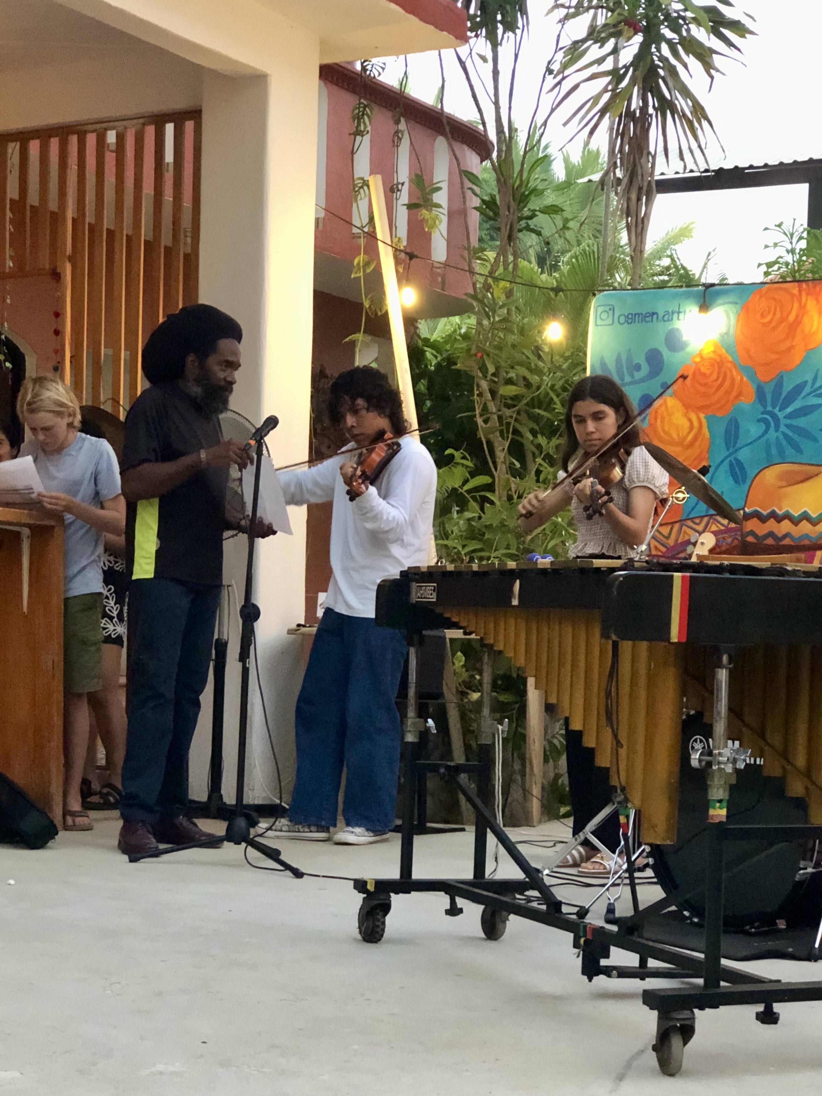 Aikeke: I think it’s the art of expressing frequencies. You know the science of frequencies? My brother, who’s died, had a PhD in physics and a PhD in chemistry. He came to the conclusion that everything vibrates, that everything has a frequency. Music is pure frequency. It’s pure vibration. It goes everywhere. Just on Monday, I asked the students in Pantla, “What do you think the creator loves?” The creator. God. Love. They said things like “praise”. I said, “How about music? Because everything that has been created vibrates.” The birds sing, the wind sings, the trees sing, the sea sings. You know everything sings. Every single thing vibrates and gives off a frequency. And it’s beautiful.