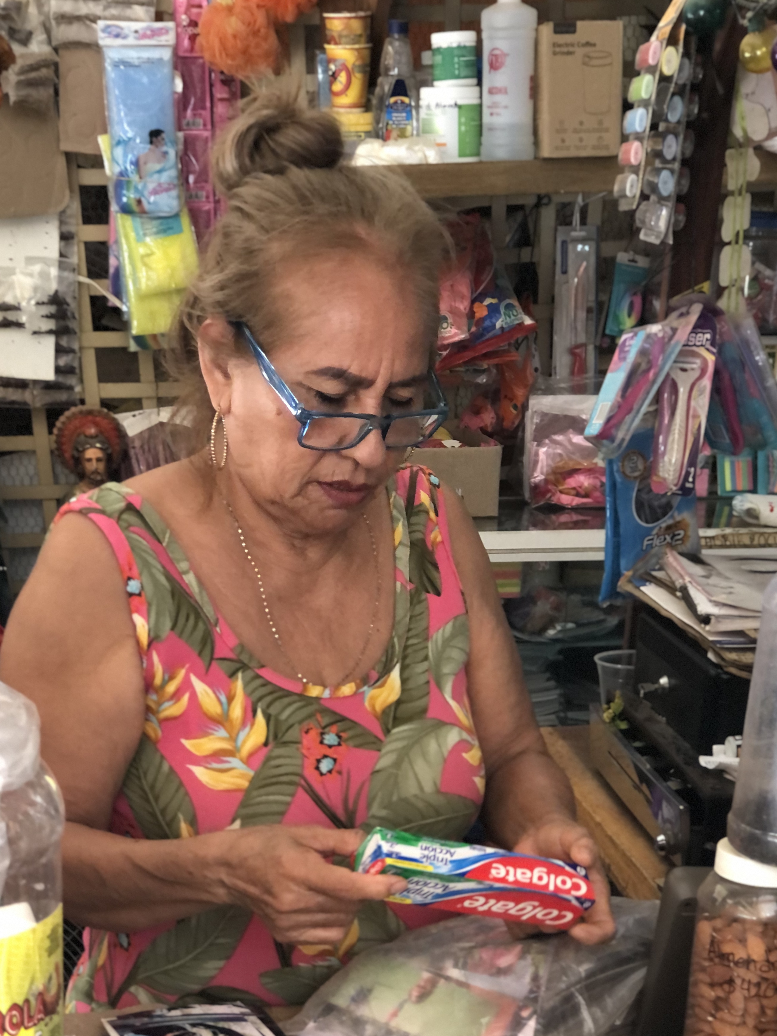 Maria: I helped my mom. Her house is where Cassandra’s hardware store is now. That’s my mom’s house, across from Gaby’s. She had a store there, Miscelánea Jasmine. A grocery store. Eggs, beer, bread, detergent. It had everything.